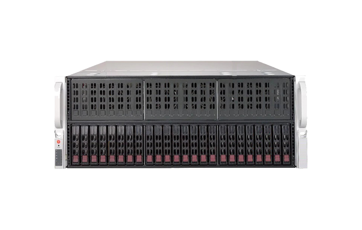 • 支持 24 块 2.5 寸 SAS/SATA 热插拔硬盘位(其中 2 块支持 NVMe),可选 6 块 3.5 寸SAS/SATA 热插拔硬盘位。