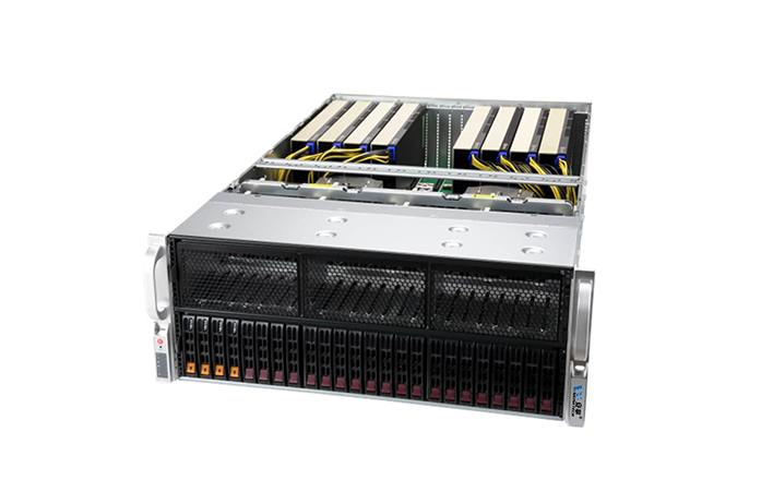 YABO鸭脖EG8420A4是一款面向云计算、大数据、AI等应用场景的高性能服务器,支持2颗AMDEPYC™ 9004系列处理器,具有业界领先的性能、极致的I/O扩展和超高的能源效率。在4U空间内最高支持10张NVIDIA H800 GPU卡,可选配NVIDIA® NVLink™ Bridge,具有高扩展和高可用性,适用于HPC、VDI、深度学习等场景。