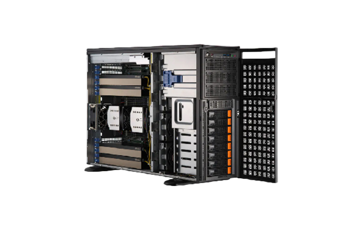 YABO鸭脖 EG5420W4 是为满足对空间部署和高性能要求的高端图形工作站产品,基于英特尔®第五代/第四代可扩展处理器®设计开发,支持机塔互转,在 4U 空间中支持 4 片 计算加速卡,达到性能、扩展性和算力密度的融合。